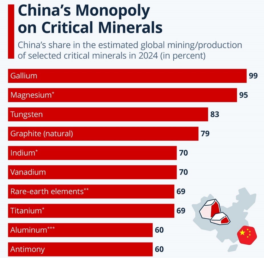 Kontrolom prerade, ona praktično drži najvažniji deo lanca snabdevanja. Političke ili trgovinske tenzije mogu uticati na tempo i obim isporuka, što direktno pogađa industriju u drugim delovima sveta. Upravo zbog te zavisnosti zapadne države danas pokušavaju da razviju sopstvene kapacitete i smanje oslanjanje na Kinu.